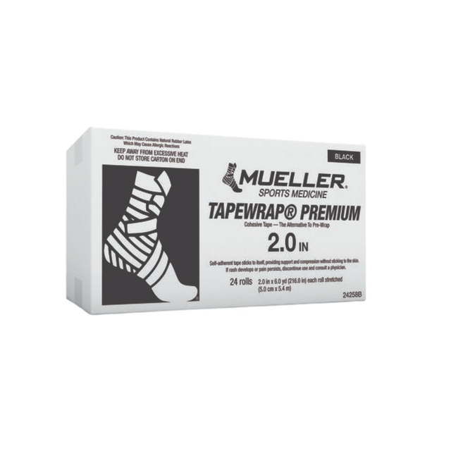 Mueller Tapewrap Premium Black 2" (Caja de 24). El tapewrap premium te brinda un soporte fuerte y duradero para tus lesiones deportivas, al mismo tiempo que te brinda libertad de movimiento. ¡Recupérate más rápido y continúa desafiando tus límites! Se vende por caja de 24 rollos premium de 2''. Precio por caja refleja descuento institucional.