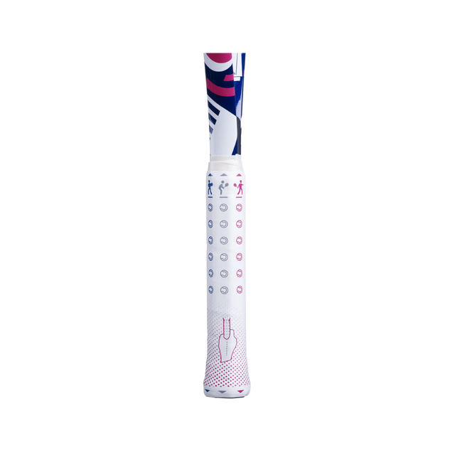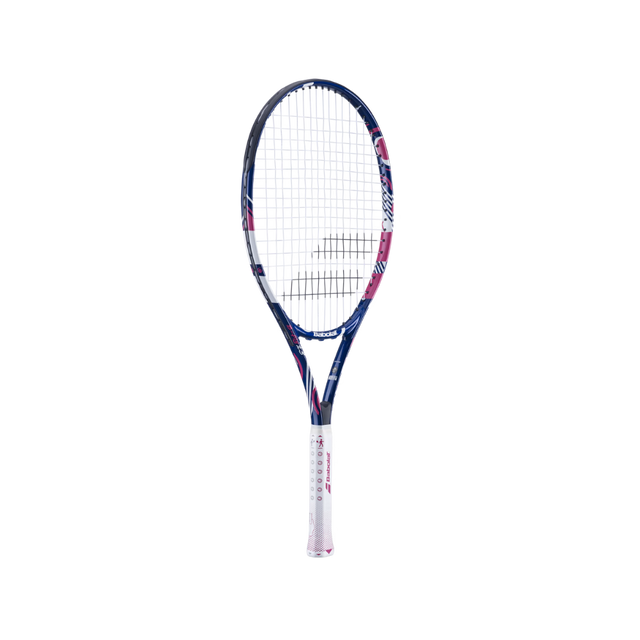 Babolat B Fly Tennis Racket 25". Raqueta de niños para jugar tenis. Hecha de aluminio. Esta raqueta viene con un agarre de enseñanza y ayudas visuales para mostrar los diferentes lados a los niños. Tamaño 25''. Peso de 7.7 oz.