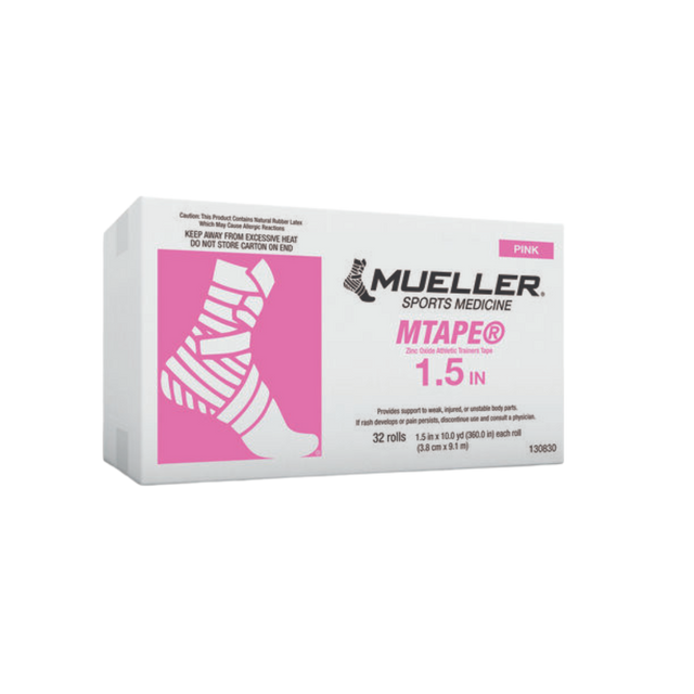 Mueller M-Tape Pink 1.5" (Caja de 32). Este tape resistente y duradero de 1.5" X 10 Yd es perfecto para envolver y apoyar tus músculos durante la actividad física. Se vende caja de 32 rollos de 1.5''. Precio por caja ya refleja descuento institucional.