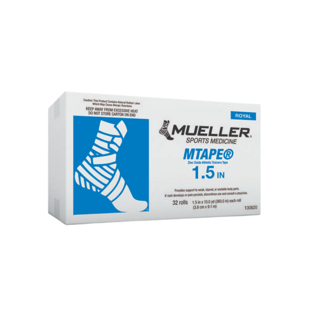 Mueller M-Tape Royal 1.5" (Caja de 32). Este tape resistente y duradero de 1.5" X 10 Yd es perfecto para envolver y apoyar tus músculos durante la actividad física. Se vende caja de 32 rollos de 1.5''. Precio por caja ya refleja descuento institucional.