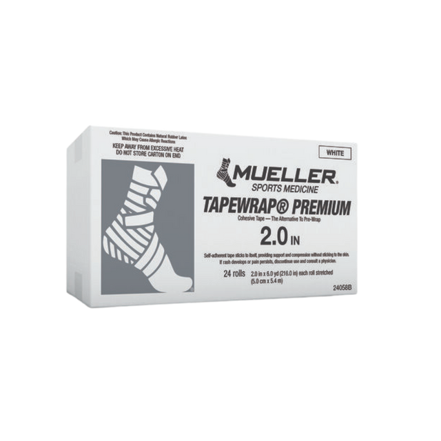 Mueller Tapewrap Premium White 2" (Caja de 24). ¡Dale a tus músculos el apoyo y protección que necesitan con nuestro Tapewrap Premium! Con un ancho de 2'' y una longitud de 6 yardas. Este tape es perfecto para envolver y asegurar tus lesiones deportivas. Se vende por caja de 24 rollos premium de 2''. Precio por caja refleja descuento institucional.