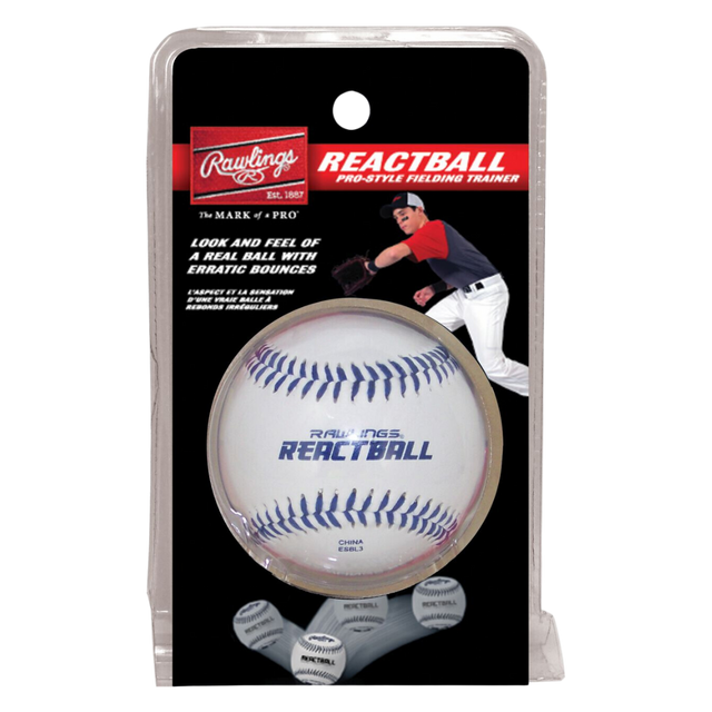 Rawlings Pro-Style REACTBALL Baseball. Esta pelota se ve y se siente como una pelota de béisbol real, pero reacciona como nunca esperarías. Su patrón de rebote impredecible le permite mejorar sus reflejos y su capacidad de fildeo.