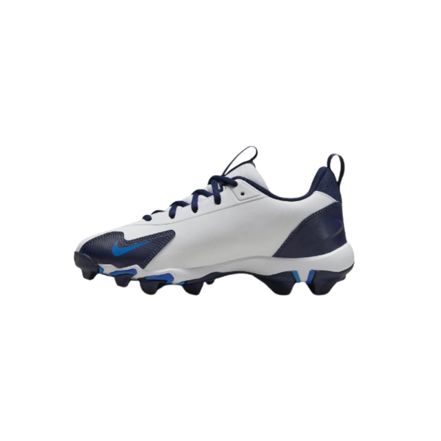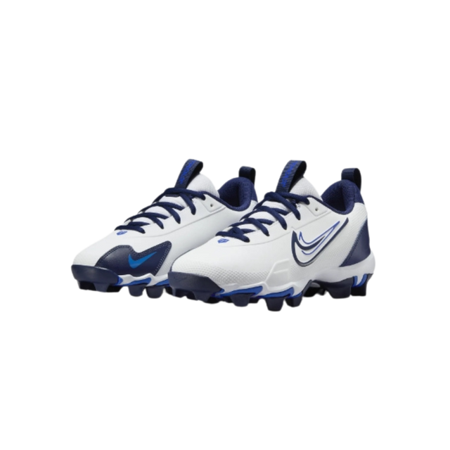 Nike Youth Force Trout 9 Keystone (White/Navy). Estos zapatos de béisbol de niño están diseñados para proporcionar un rendimiento superior en el campo, con características que optimizan la tracción, la velocidad y la flexibilidad.